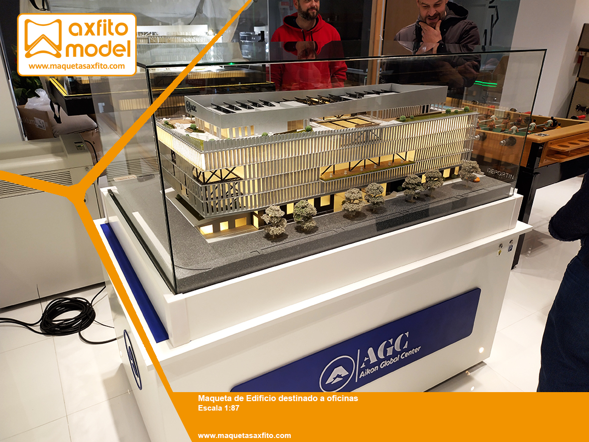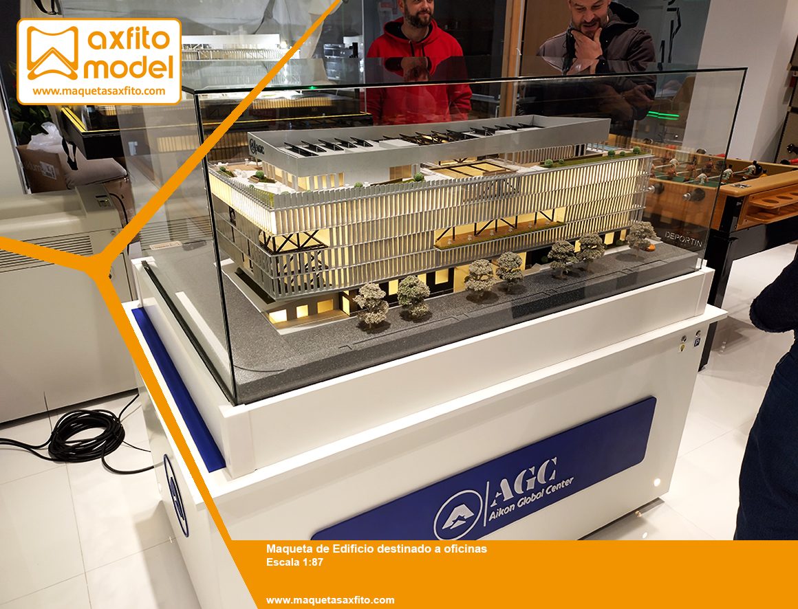 En Axfito Model hemos desarrollado una maqueta arquitectónica de alta precisión para un nuevo edificio de oficinas que se está construyendo en Granada, un proyecto contemporáneo concebido para albergar múltiples tipos de negocio dentro de un entorno empresarial innovador.