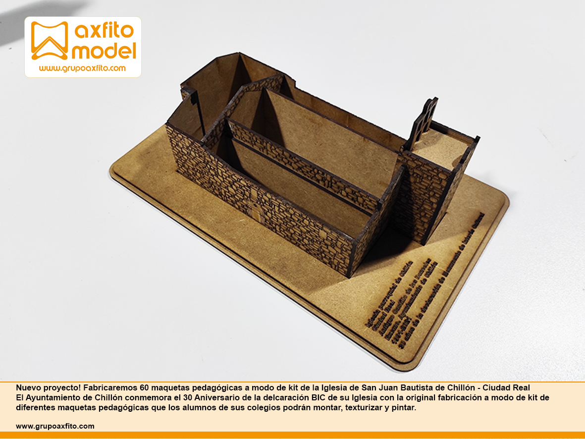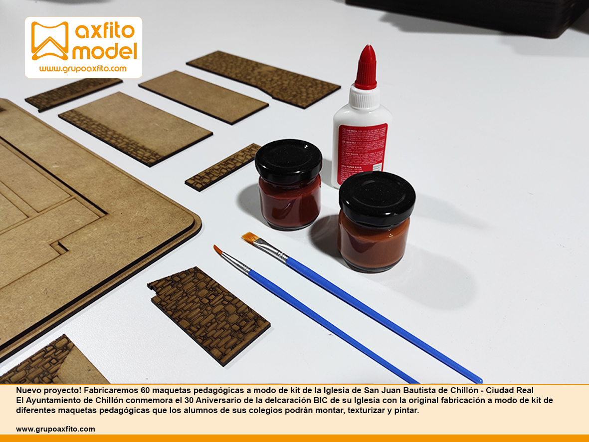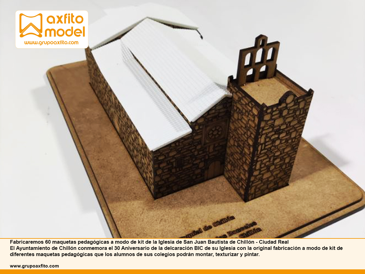 El Ayuntamiento de Chillón nos encarga el diseño y fabricación de 60 maquetas pedagógicas desmontadas y presentadas a modo de kit para que los alumnos de su colegio puedan montar la maqueta de la Iglesia de Chillón.