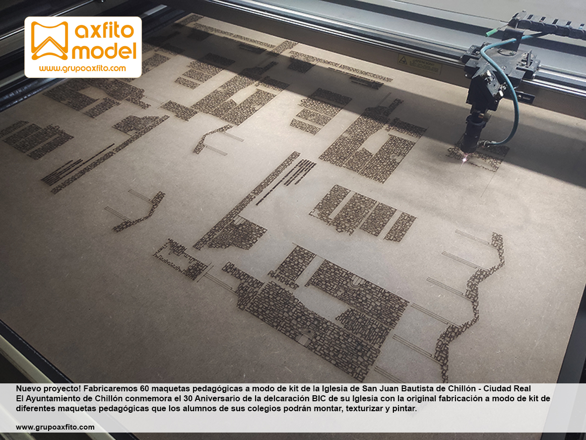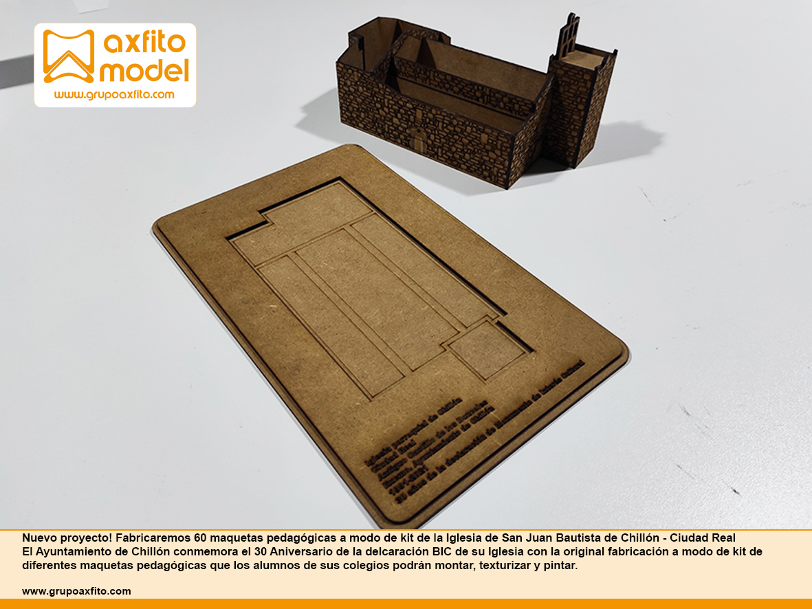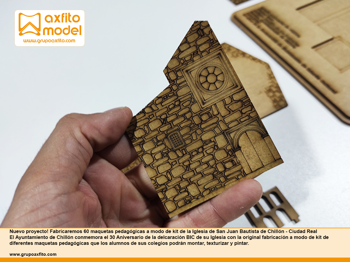 El Ayuntamiento de Chillón nos encarga el diseño y fabricación de 60 maquetas pedagógicas desmontadas y presentadas a modo de kit para que los alumnos de su colegio puedan montar la maqueta de la Iglesia de Chillón.