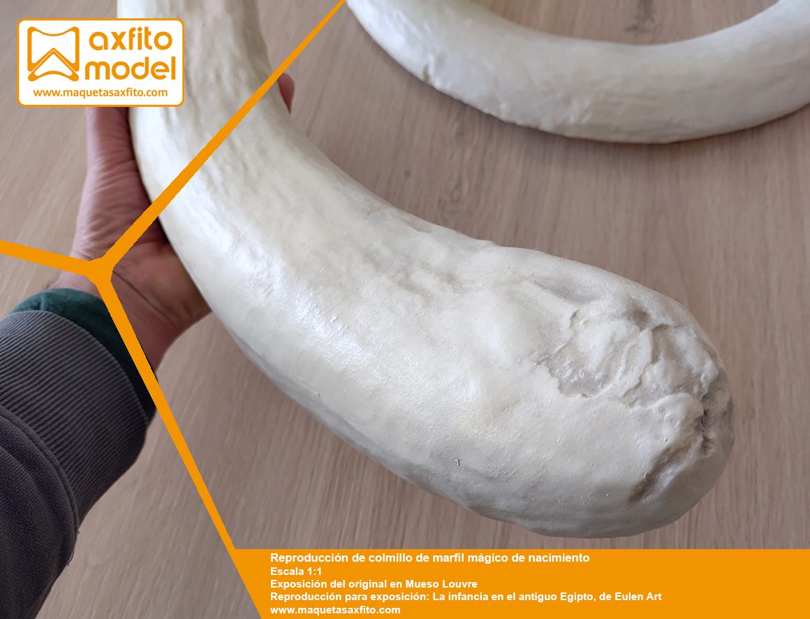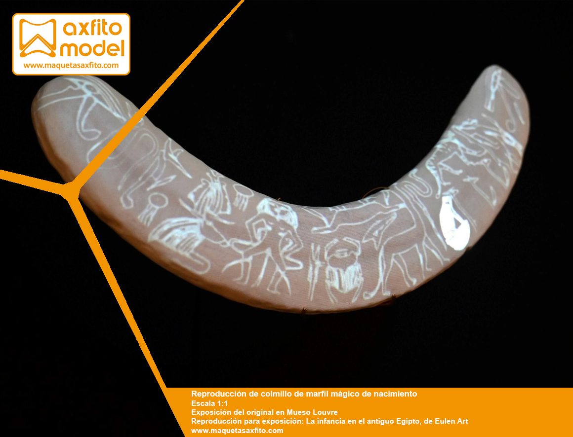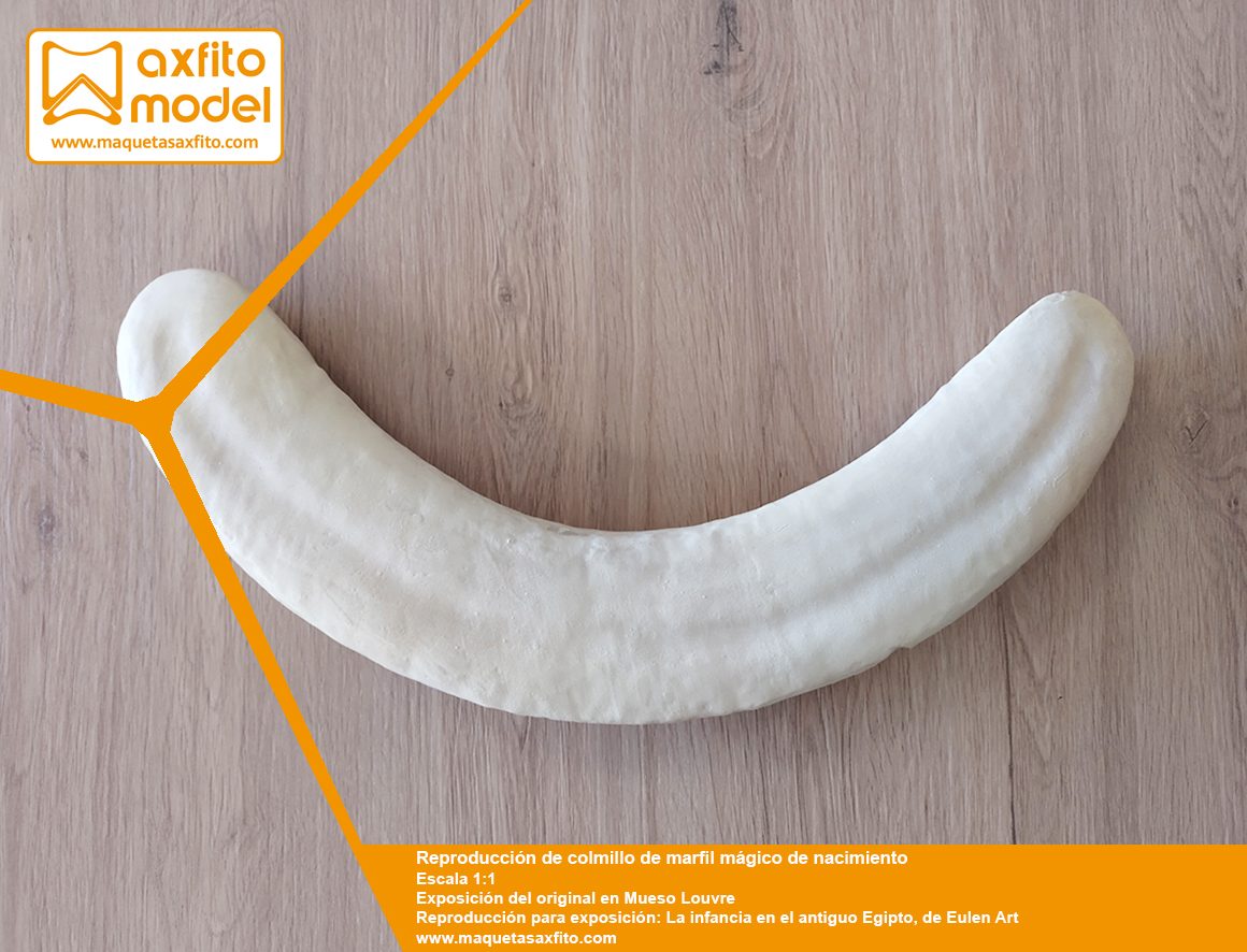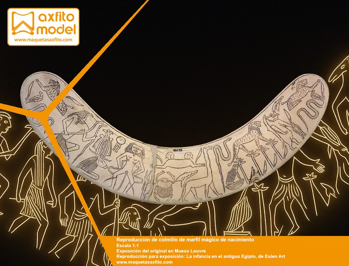 En Axfito Model hemos desarrollado la reproducción a escala 1:1 de un colmillo mágico de marfil, una pieza arqueológica excepcional perteneciente al Imperio Medio Egipcio (Dinastía XII), cuyo original se conserva en el Museo del Louvre de París.