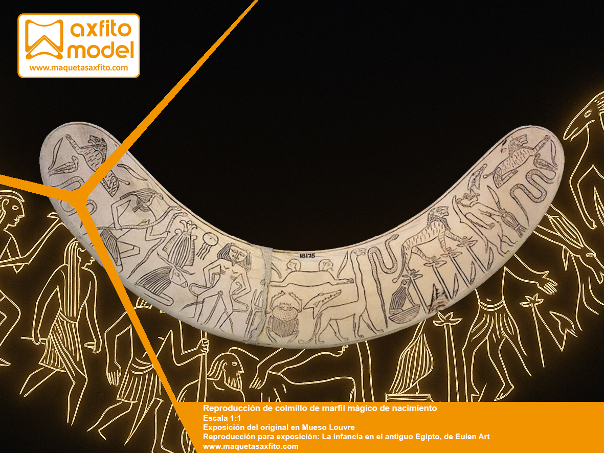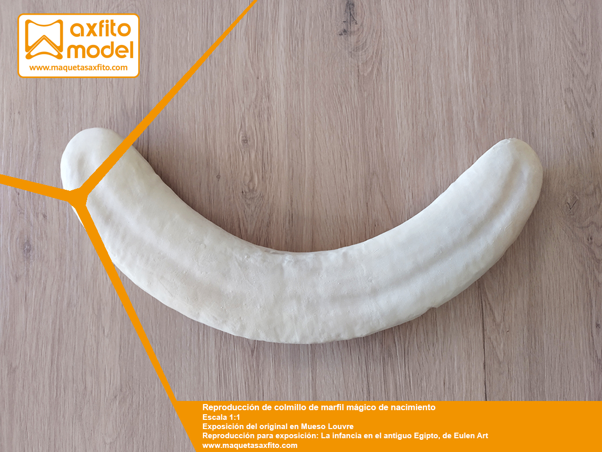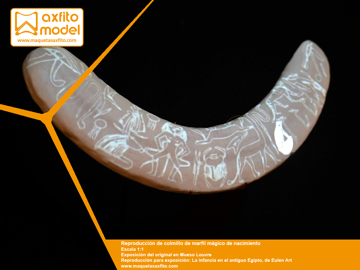 En Axfito Model hemos desarrollado la reproducción a escala 1:1 de un colmillo mágico de marfil, una pieza arqueológica excepcional perteneciente al Imperio Medio Egipcio (Dinastía XII), cuyo original se conserva en el Museo del Louvre de París.