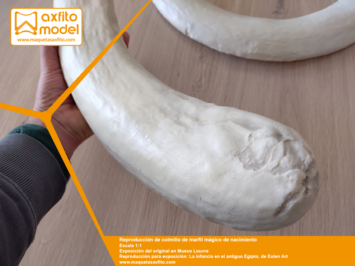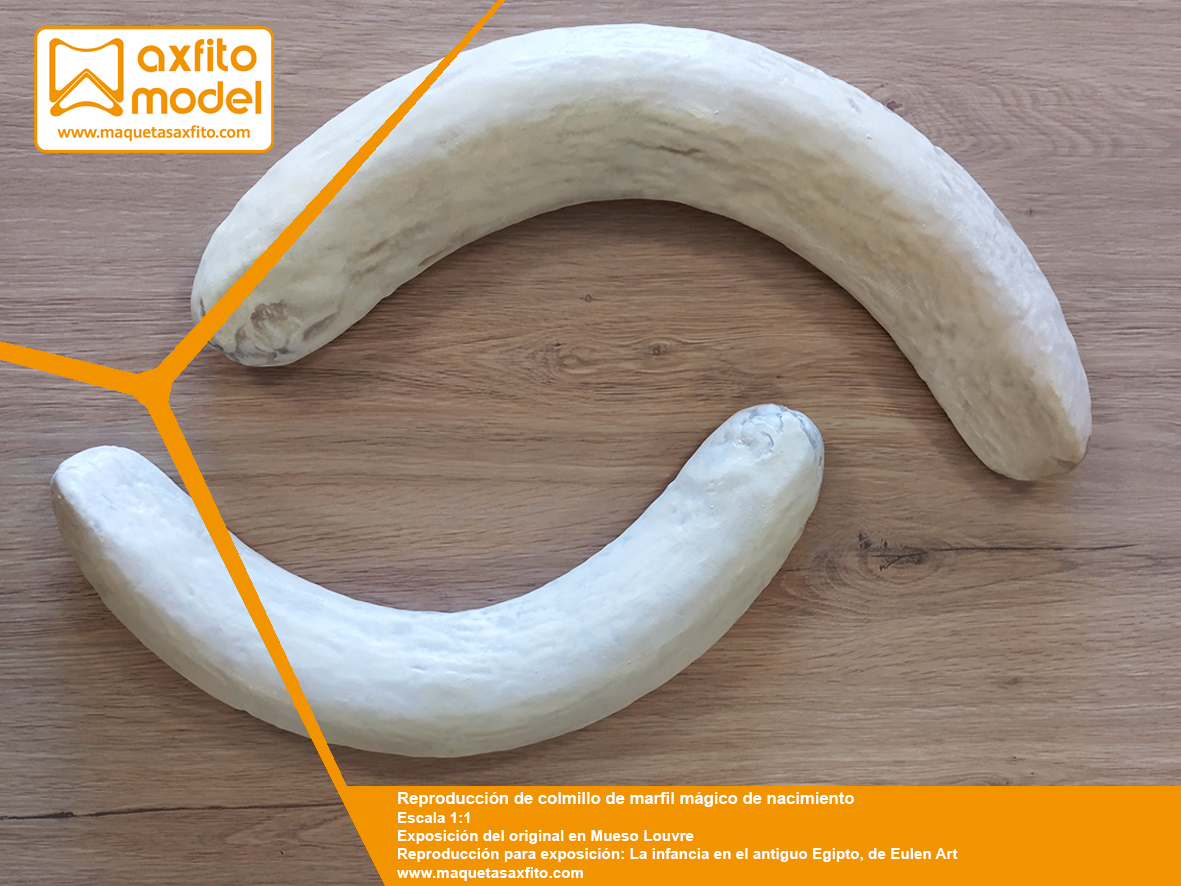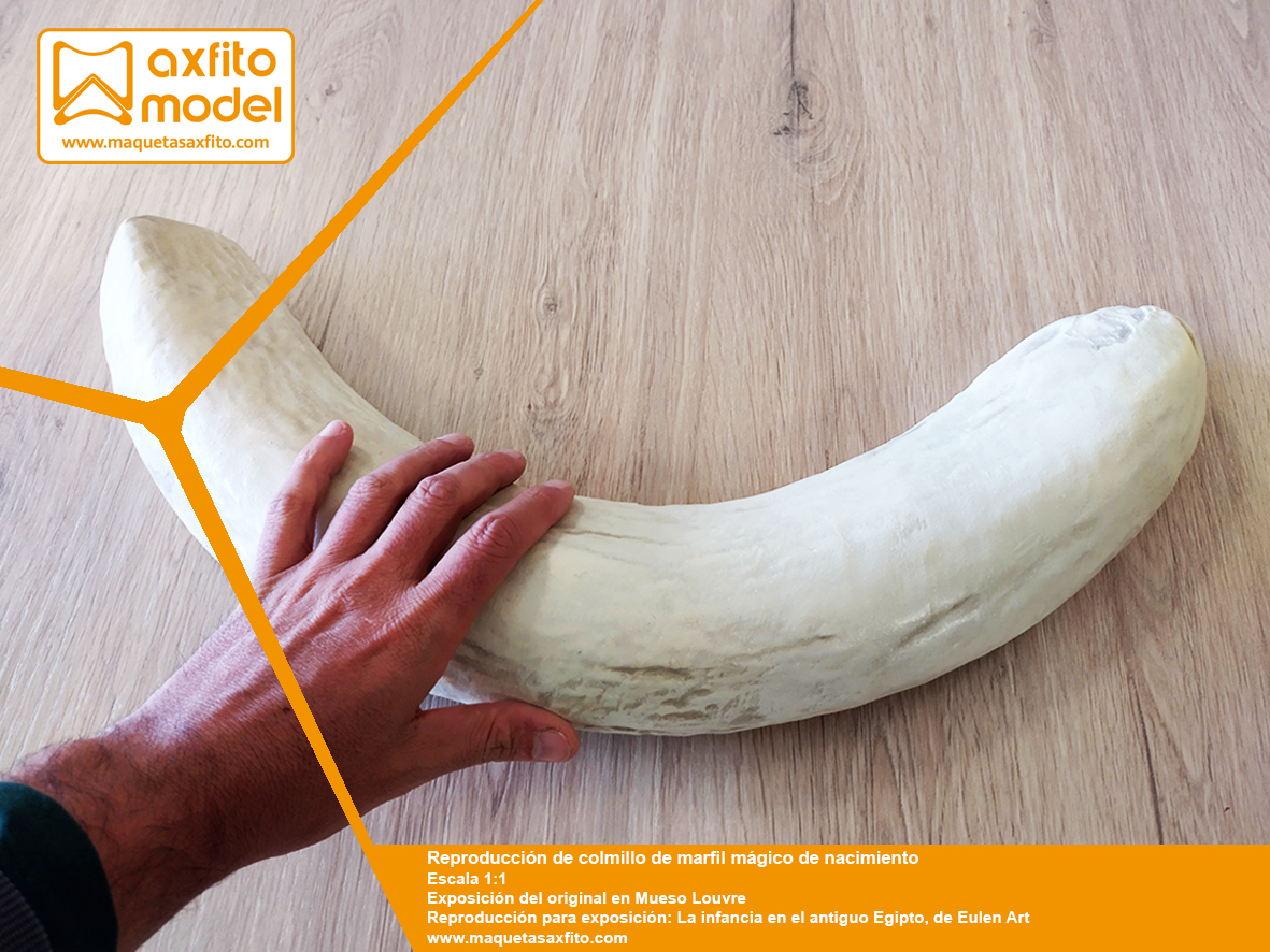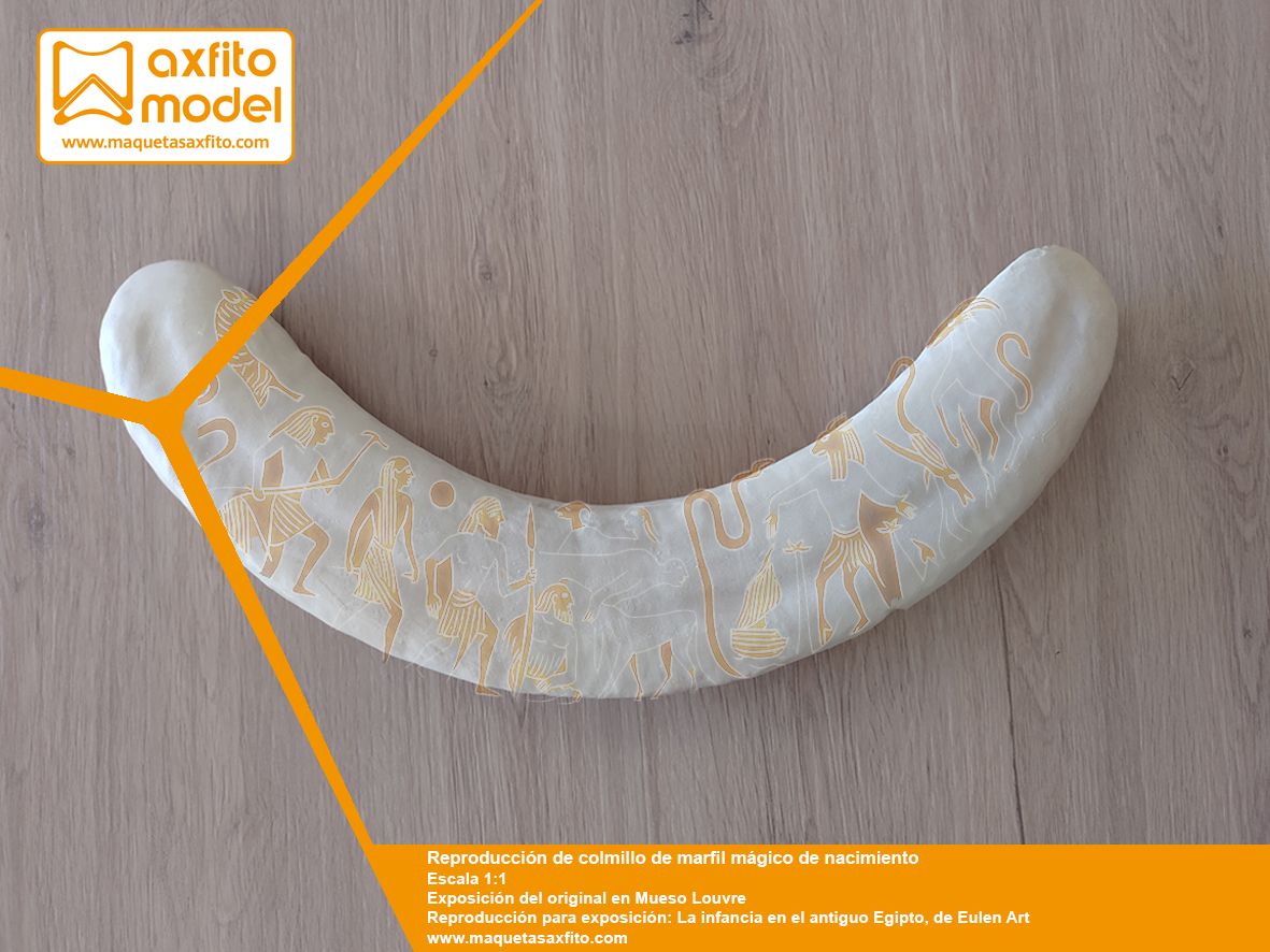 En Axfito Model hemos desarrollado la reproducción a escala 1:1 de un colmillo mágico de marfil, una pieza arqueológica excepcional perteneciente al Imperio Medio Egipcio (Dinastía XII), cuyo original se conserva en el Museo del Louvre de París.